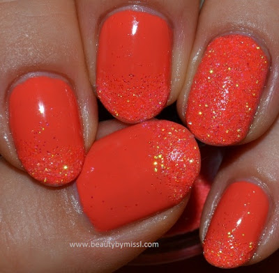I’m loving this orange. And u can see a little how the light reflects the glitter and really makes it pop