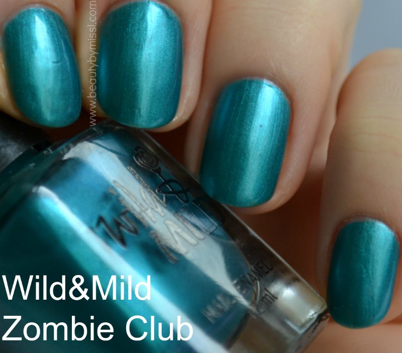 On my nails you can see two coats of Wild&Mild Zombie Club and one coat of INM OTD top coat. Â Btw in real life this nail polish looks bit darker.